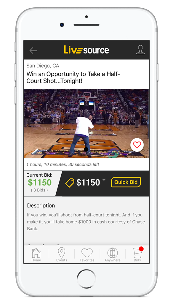 Founded in 2016 by Scott F. Levin, LiveSource is a mobile auction app and website that facilitates in-the-moment auctions and raffles before, during and after events. LiveSource is designed to benefit athlete and entertainer foundations. The LiveSource platform gives fans in attendance and at home the ability to bid on items and experiences that become available during an event. Bidding, winning, payment and delivery is all facilitated on mobile devices through the LiveSource app and website. Partners receive the proceeds directly and can disperse the revenue without delay.